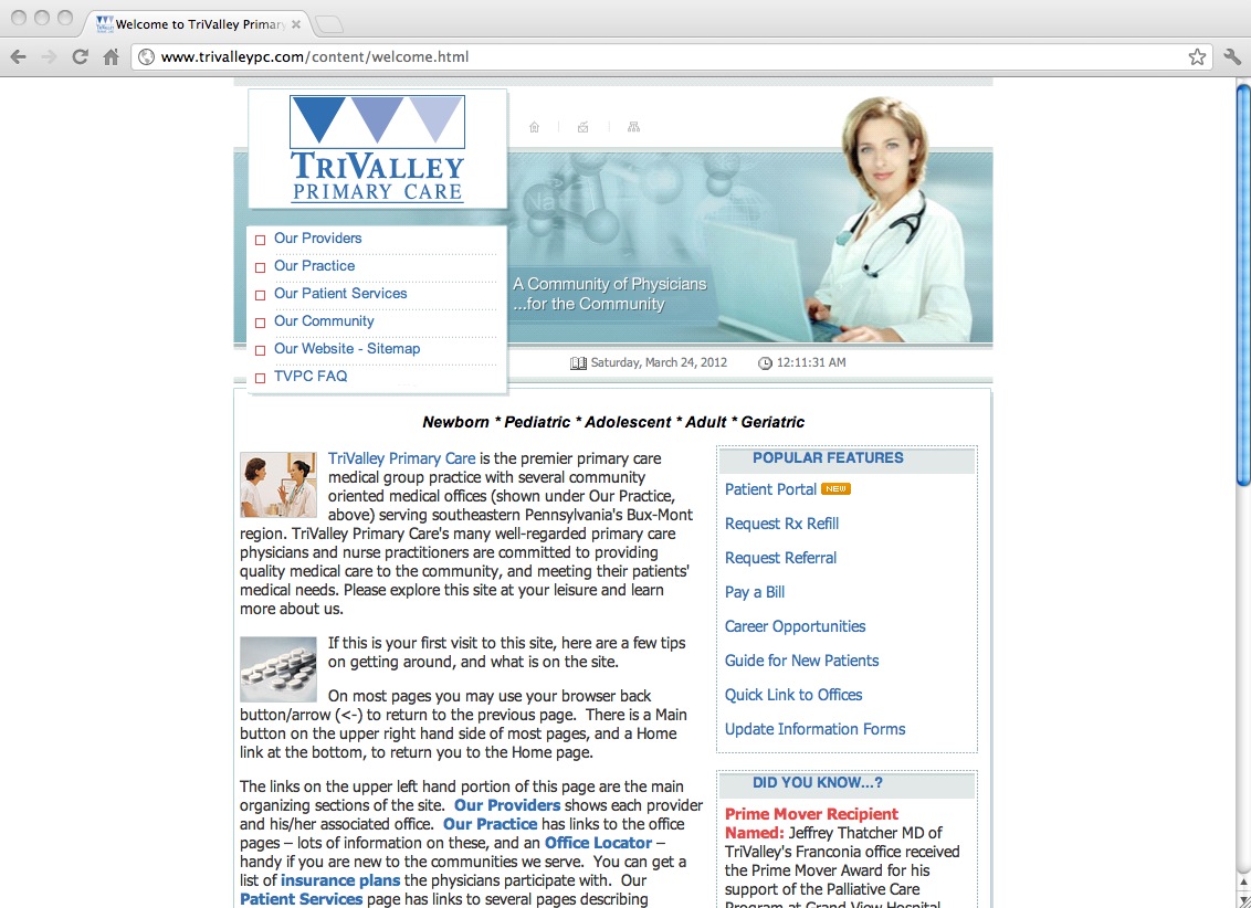 TriValley Primary Care Healthcare Website